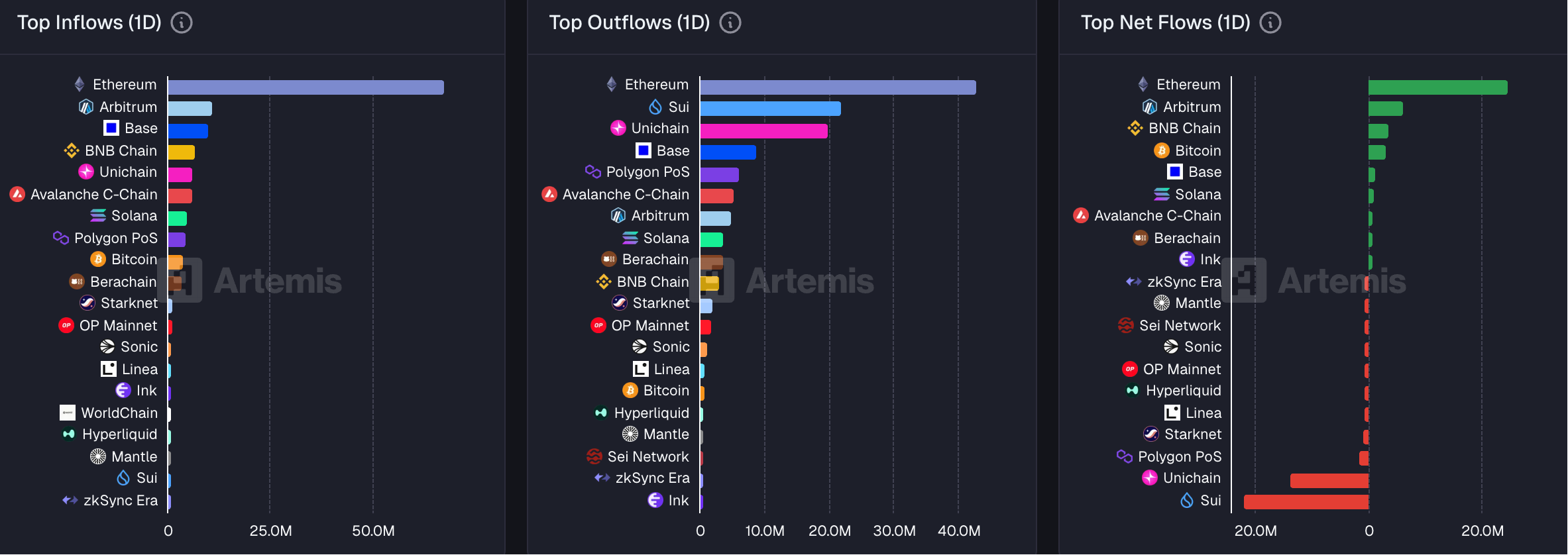 9 月 5 日,美国劳工部公布的 8 月非农就业数据再次令市场失望——新增就业仅 2.2 万人,远低于预估的 7.5 万人。至此,非农已连续四个月疲软,8 月也将过去四个月的平均新增就业数拉低至仅 2.7 万。疲弱数据直接推动市场对美联储政策路径的重新定价:9 月、10 月和 12 月连续降息的预期全面升温,据 CME 数据显示,美联储降息概率从公布前的 86.4% 飙升至 100%,其中 90% 押注 25 个基点,10% 甚至押注 50 个基点。然而,利好政策预期并未能提振风险偏好,美股盘面小幅下跌,显示交易员更担忧的是经济动能放缓所带来的衰退风险,「降息利多」正在被「衰退交易」所掩盖。接下来,律动 神经日报 整理了交易员们对接下的市场情况的看法,为大家本周的交易做出一些方向参考。链上数据9 月 8 日当周链上资金流动情况