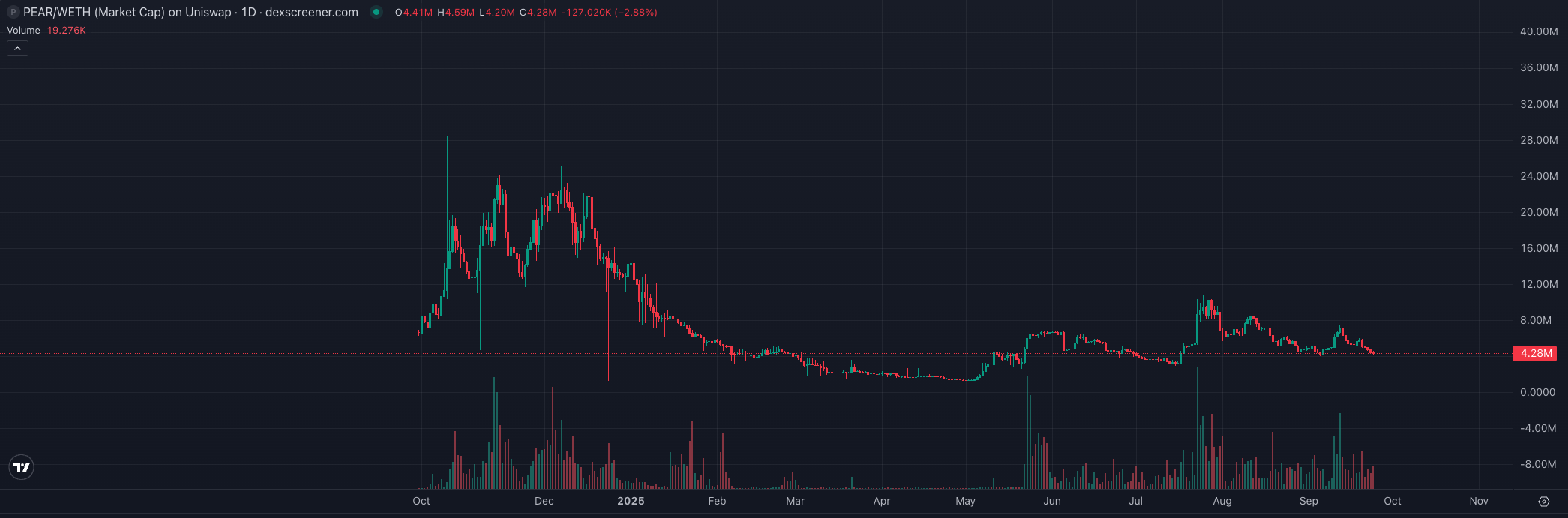 当前 Pear Protocol 的平台代币 $Pear 在 Arbitrum 上发行,现市值 420 万美元,FDV1500 万美元。