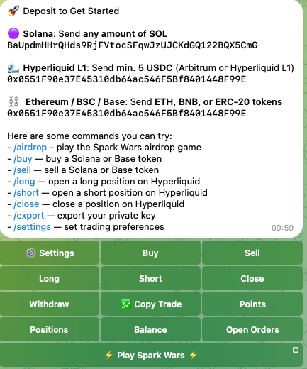 Spark 是一款致力于多链交易的 TG 交易终端,前段时间开始支持多个 PerpDex 的合约开仓、平仓、跟单聪明钱包等操作,一站式界面极大简化了不同 PerpDex 间切换的步骤。