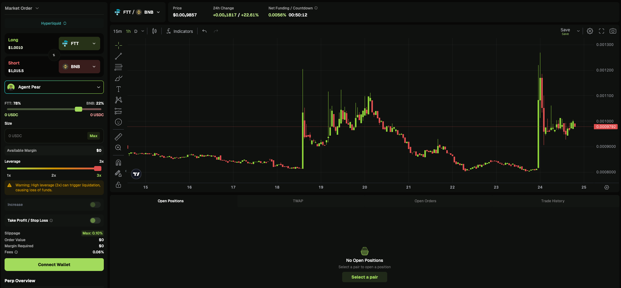 用户可以通过 Pear 平台同时接入这两条网络的合约市场,免去了手动切换钱包和交易所的麻烦。适合活跃的衍生品交易者使用。其最大的产品优势,就是可以同时开多空两个交易对做对冲,并且开放了 PAIR MARKets 实时更新市面上适合做对冲的交易对。
