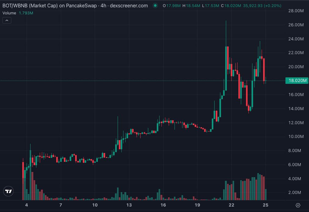 Hyperbot 的代币 BOT 已在币安 Alpha 上线,因近期 Aster 的火爆以及第二期空投活动的开始,HyperBot 的代币$BOT 的价格走势也相当喜人,现市值达到了 1500 万美元,FDV 更是达到 1.4 美元。对于观察资金行为的用户来说,Hyperbot 已经成为功能相对完善的助手。