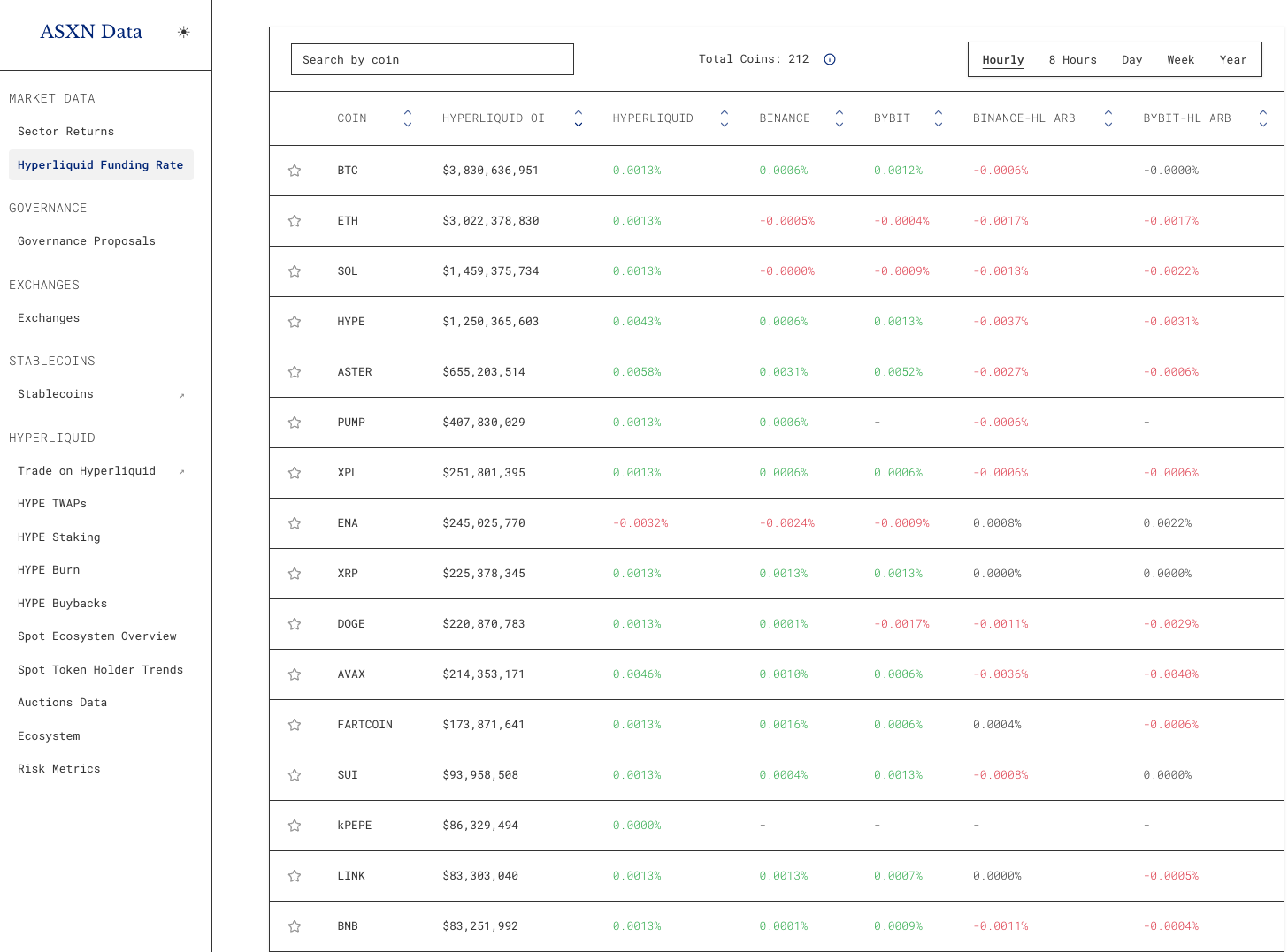 而 ASXN 虽然不如 Loris 在资金费率这个数据赛道做的完善,但是他的功能远不止于此。ASXN DATA 是由加密研究员ASXN所创建的看板,它提供了几乎一整套 Hyperliquid 数据仪表盘。