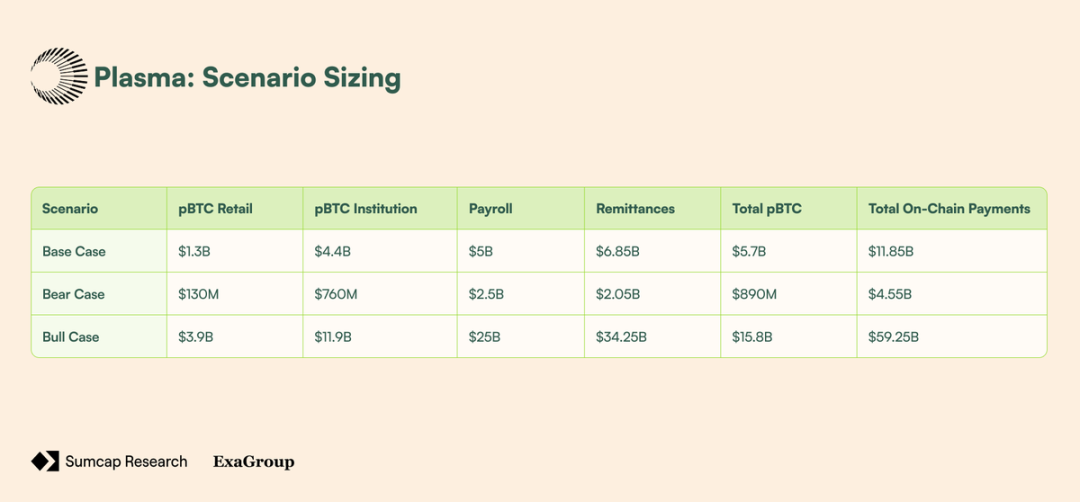 基本情景: pBTC 的采用来自于寻求更安全替代方案的零售用户以及早期机构对 DeFi 收益的兴趣。链上支付随着汇款成本节约获得关注以及一小波科技公司尝试加密工资单而增长。