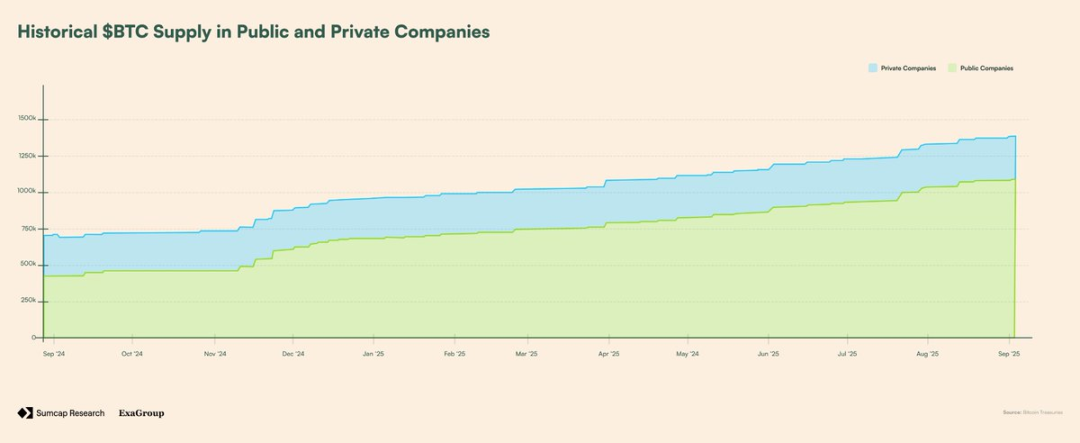 但,零售需求只是故事的一部分。机构和公司的采用正在兴起,上市公司和私营公司目前合计持有约 138 万 BTC。这比年初增加了 83.3 万 BTC——突显了机构加速采用的明显趋势。