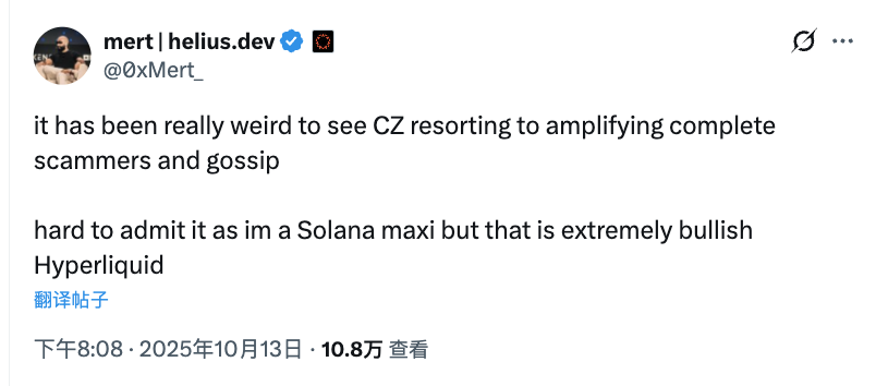 这场争论很快引发了站队。DeFi 老炮 Andre Cronje 站台 Binance,而 Solana 社区核心成员、HeLius LAbs CEO Mert 则选择支持 HyperlIQuid。整个行业因此分裂成两个阵营。