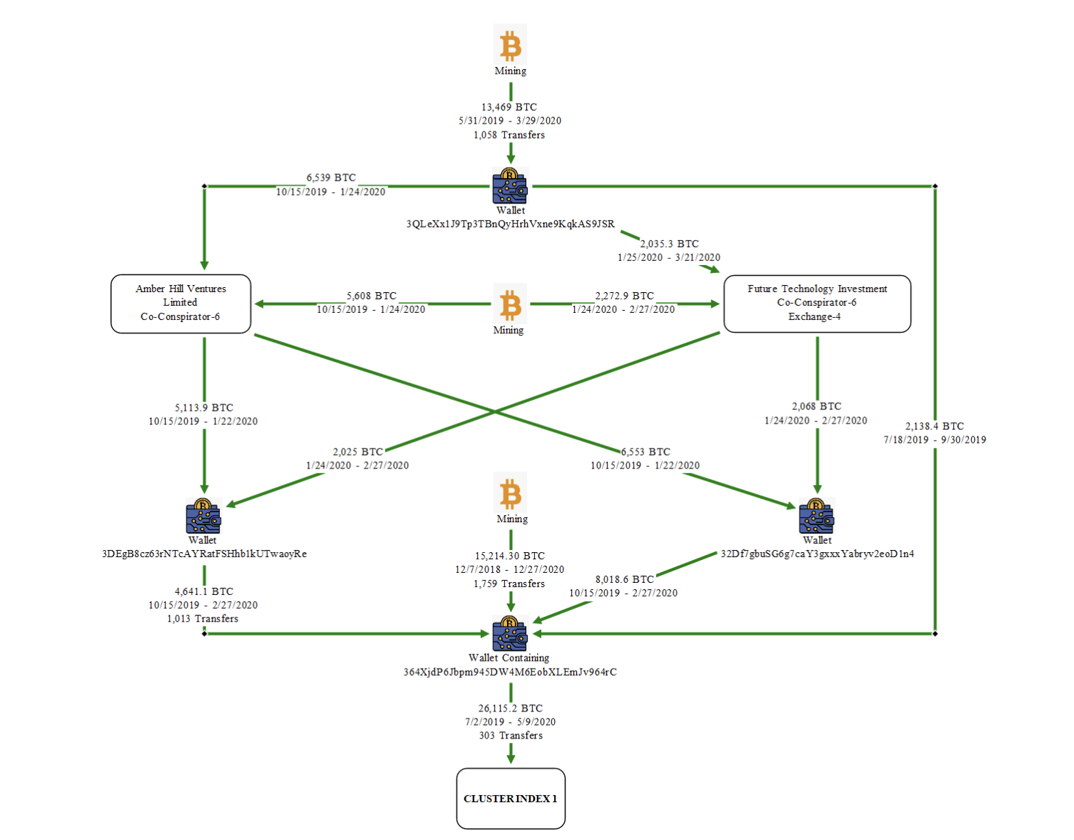 这些硬件钱包随后被转移至美国财政部旗下 US MarsHaLs Service(USMS)保管的多重签名冷库中。而 2025 年 10 月 15 日 由 USMS 签名转入官方托管地址的那笔 9,757 btc 的转账就是来自于此。美国司法部在起诉书中将 Lubian 描述为柬埔寨太子集团洗钱网络的组成部分,强调犯罪集团试图利用矿池挖出的「新币」洗白诈骗资金。