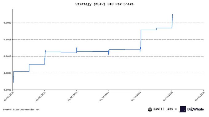 每股加密资产(CPS):每一股所代表的加密资产单位数量。它衡量每股所对应的 BTC、ETH 或其他资产的数量。