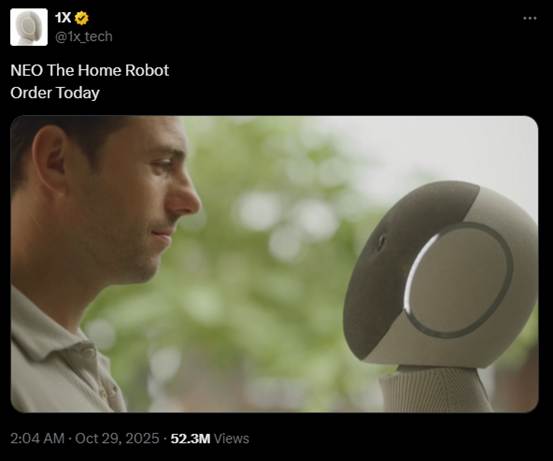 前天,挪威的人形机器人公司 1X TecHnoLogies 正式发布了 NEO 机器人并开放预购,售价为 20000 美元,也支持月度订阅模式(每月 499 美元),预计将在 2026 年开始交付。特斯拉也说机器人是下一个主要盈利点。看来机器人相当有可能会是下一个主线。