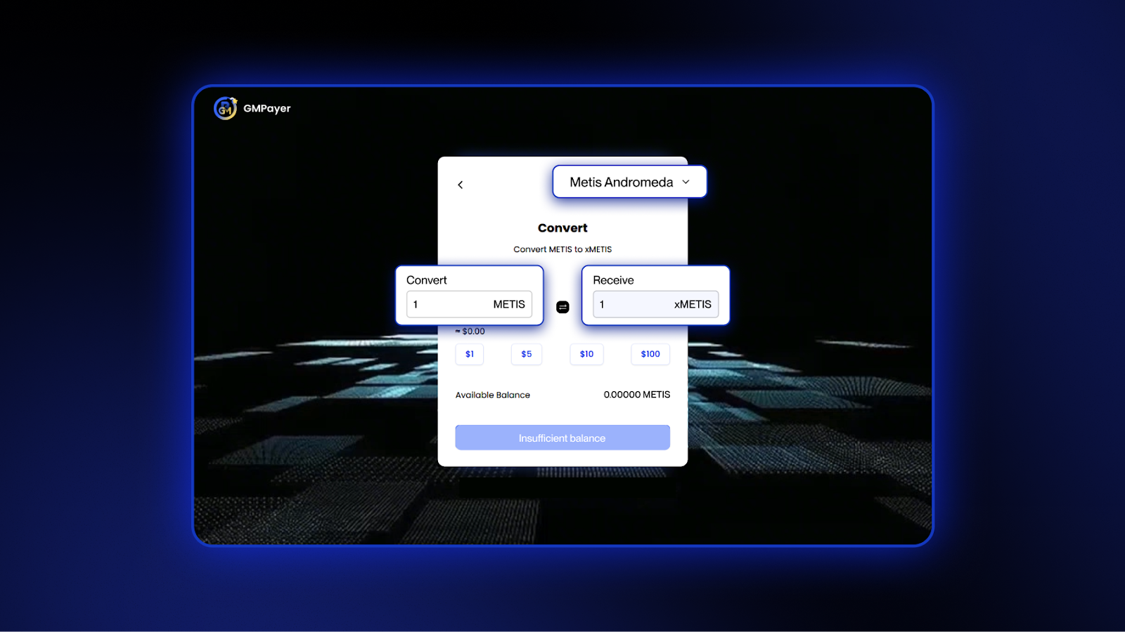 获取 xMetis/xGOATED如果您需要转换您的代币,GMPayer 提供了内置的"转换"功能。