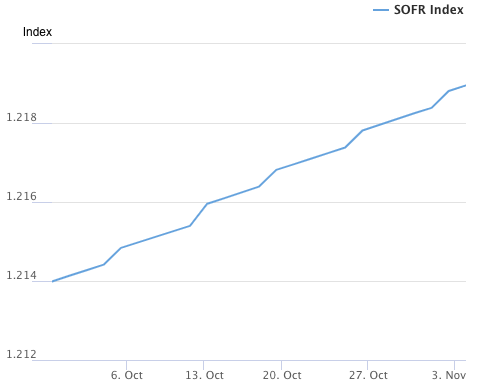 第一个指标是 SOFR(有担保隔夜融资利率)。10 月 31 日,SOFR 飙升至 4.22%,创下一年来最大日涨幅。
