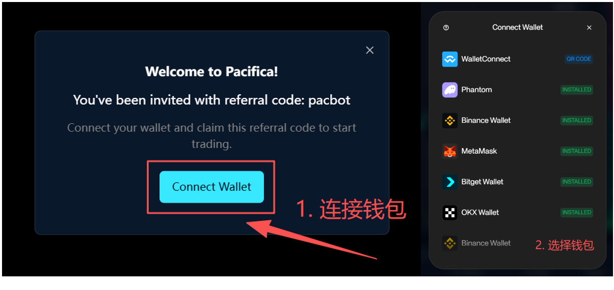 Pacifica 注册教程1. 打开 Pacifica 官网,完成注册与钱包绑定Pacifica 官网 : https://app.pacifica.fi/