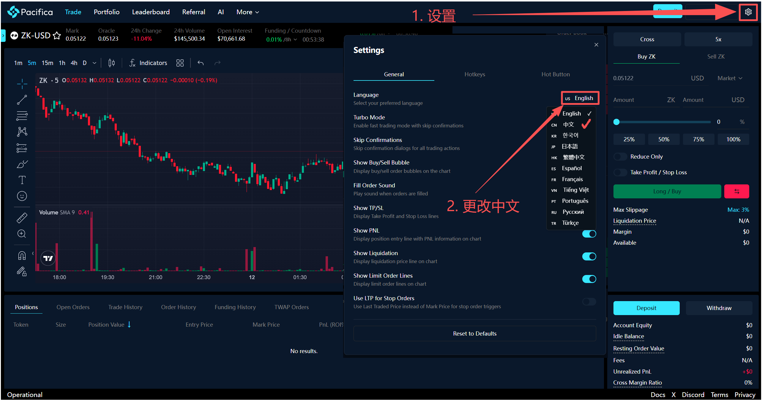 目前网站支持多种语言,如果你是华语区用户,点击「中文」或「繁体中文」; 如果更习惯英文页面,可不进行更换。