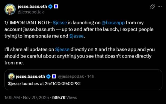 Jesse 这次会认真吗?有可能,代币也有可能在发射后短期暴涨,但不能把这种可能的希望作为大力投资的依据。如果以一种尝试 Base App,少量购入作为交互行为以期获取未来可能的 Base 代币空投,降低对这个新代币的期望值,会是一种更为游刃有余的策略。