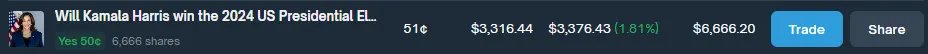 大约一个月前,我在 Polymarket.com 上注意到一些套利机会。不过,该平台的流动性不足以让我进一步扩大仓位,因此我正打算回到股票交易。但话说回来,我目前仍有大约 6 万美元投入在 Polymarket 的各类市场中。这些交易大多会在大选结束后到期,届时我会统一平仓。下面我将逐一介绍这些仓位,并附上一些免费代码,供有兴趣探索这一市场的人参考。