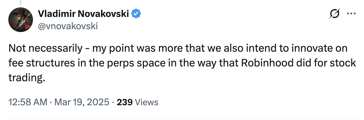 Lighter 的创始人 Vladimir NovakovsKI 曾就职于全球最大的做市商 Citadel,并且曾担任 ROBINhood 的顾问。Robinhood 是散户使用最多的美股券商,Citadel 是 Robinhood 最大的市场合作伙伴,而 Robinhood 又是 Lighter 的直接投资者。