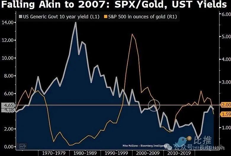 在其最新观点中,McGlone 反复强调一个概念:InfLAtIon / DeflatIOn Inflection(通胀向通缩切换的拐点)。在他看来,全球市场正站在这样一个关键节点附近。随着主要经济体通胀见顶、增长动能放缓,资产定价逻辑正在从「对抗通胀」转向应对「通胀后的通缩」——即通胀周期结束后价格全面下跌的阶段。他写道:「比特币的下跌走势,可能重现 2007 年股市面对美联储政策时的情形。」