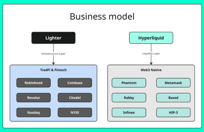 1. 一个关键的误解:Lighter 和 HyperlIQuid 并不是同一类产品我目前找到的最清晰的心智模型是:
