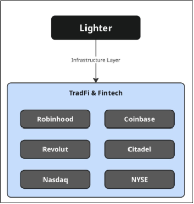 如果 Lighter 只是「又一家永续合约交易所」,那它被按同类 Perp DEX 定价,逻辑上并不意外;但如果它本质上是一套可以被大型分发渠道(券商 / 金融科技公司)接入的交易基础设施,那么它所面对的估值天花板,就完全是另一套游戏规则。