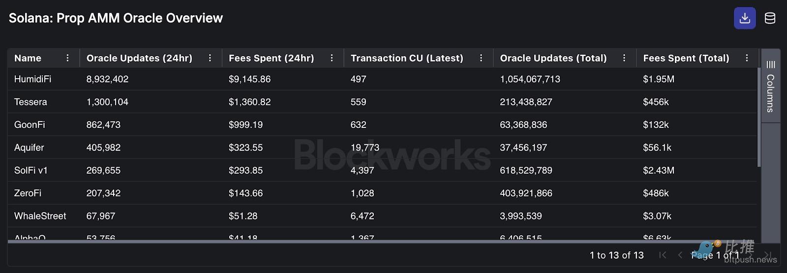 下表显示,HumidiFi 已将其预言机更新交易减少至<500 CU,为同类中最低。除了 HumidiFi,只有 Tessera 和 GoonFi 低于 1000 CU。