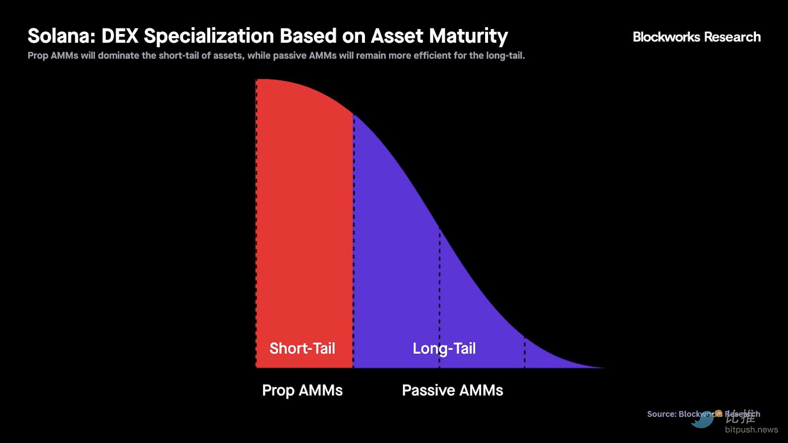 专业化:短尾资产 vs. 长尾资产Solana 的 DEX 主导地位将继续根据资产成熟度分化。