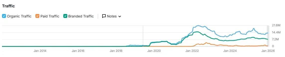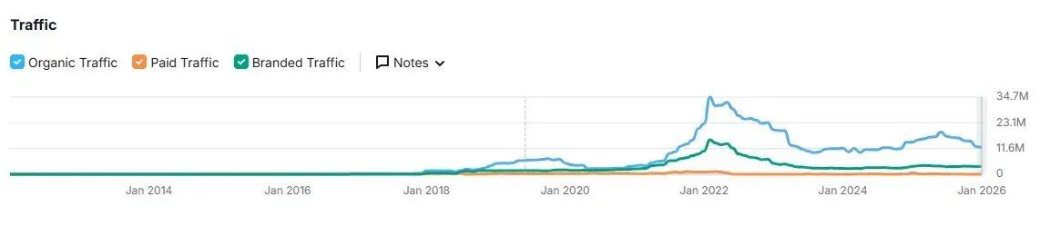 缺席的散户从 Binance、Coinbase 等几家头部 CEX 的站点流量可以看到:自 2021 年牛市峰值以来,整体访问量持续下行,即便 BTC 创出新高也未显著恢复,与隔壁 Robinhood 的火爆形成鲜明对比,更多可以阅读我们去年写的「Where are the marginal buyers」「边缘买家在哪里」。