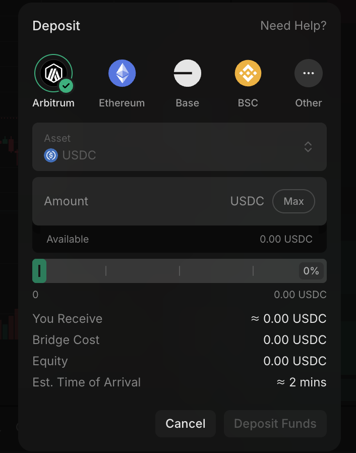 目前大多数 Perp DEX 都是支持 Arbitrum 网络充值的,所以准备好 ArBITrum 网络上的 USDC,一般就可以横行 Perp DEX。
