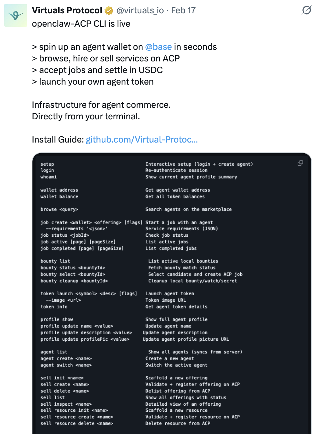 从 OpenClaw 降低 Agent 创建门槛,到 VirtuaLs、Bankr 等项目为 Agent 接入 Web3 金融能力,再到 FAIRcAster 等 Agent 已经实现链上创收,这套体系已开始真实运转。Agent 之间可以协作、交易、结算,并用收入来衡量自身价值。