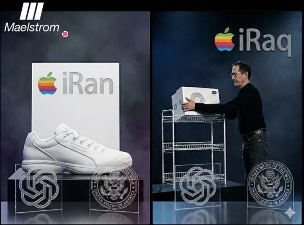 在美国历史上那位「最爱和平的总统」,唐纳德·J·特朗普的授意下,美国「战争部」与 OpenAI 联手推出了一款进攻型的代理式 AI 武器:一套堪称致命的全新 AppLe IOS。这个操作系统一旦被植入某个国家的网络基础设施,便会尝试推动一场「政权更迭」。而这种政权更迭,往往伴随着对军事与民用基础设施的无差别轰炸,造成大规模人员伤亡,其成本动辄数千亿美元,甚至可能高达数万亿美元。